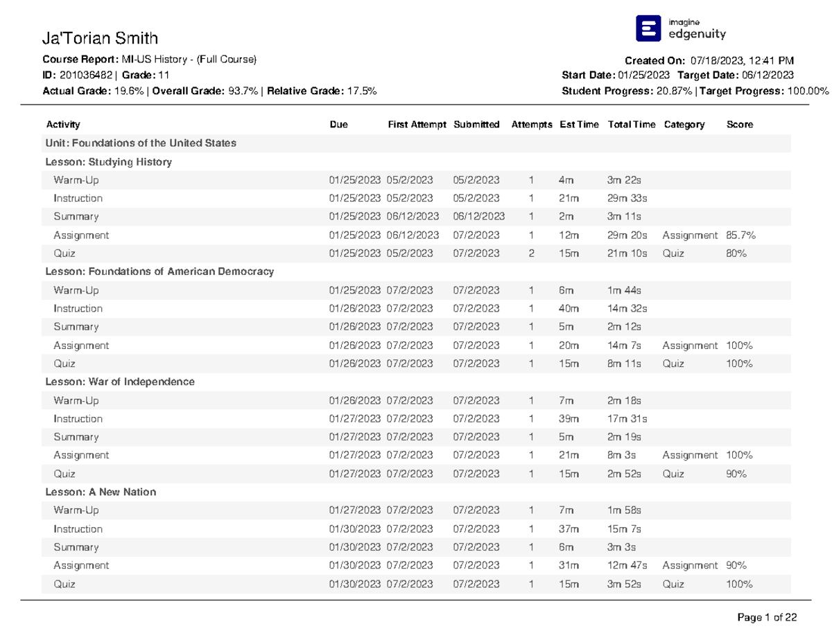 Course Report 07 18 2023 Smith Ja'Torian MI-USHistory-(Full Course ...