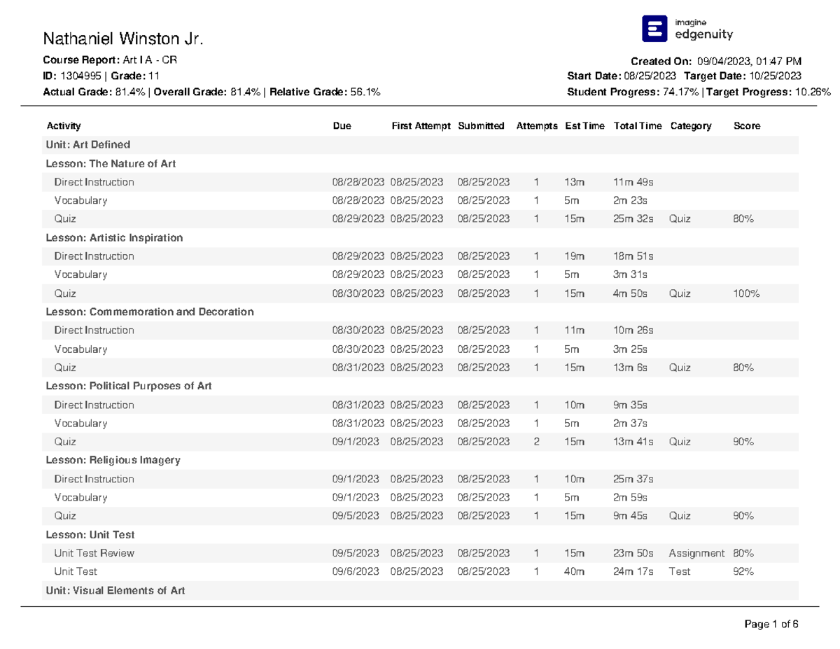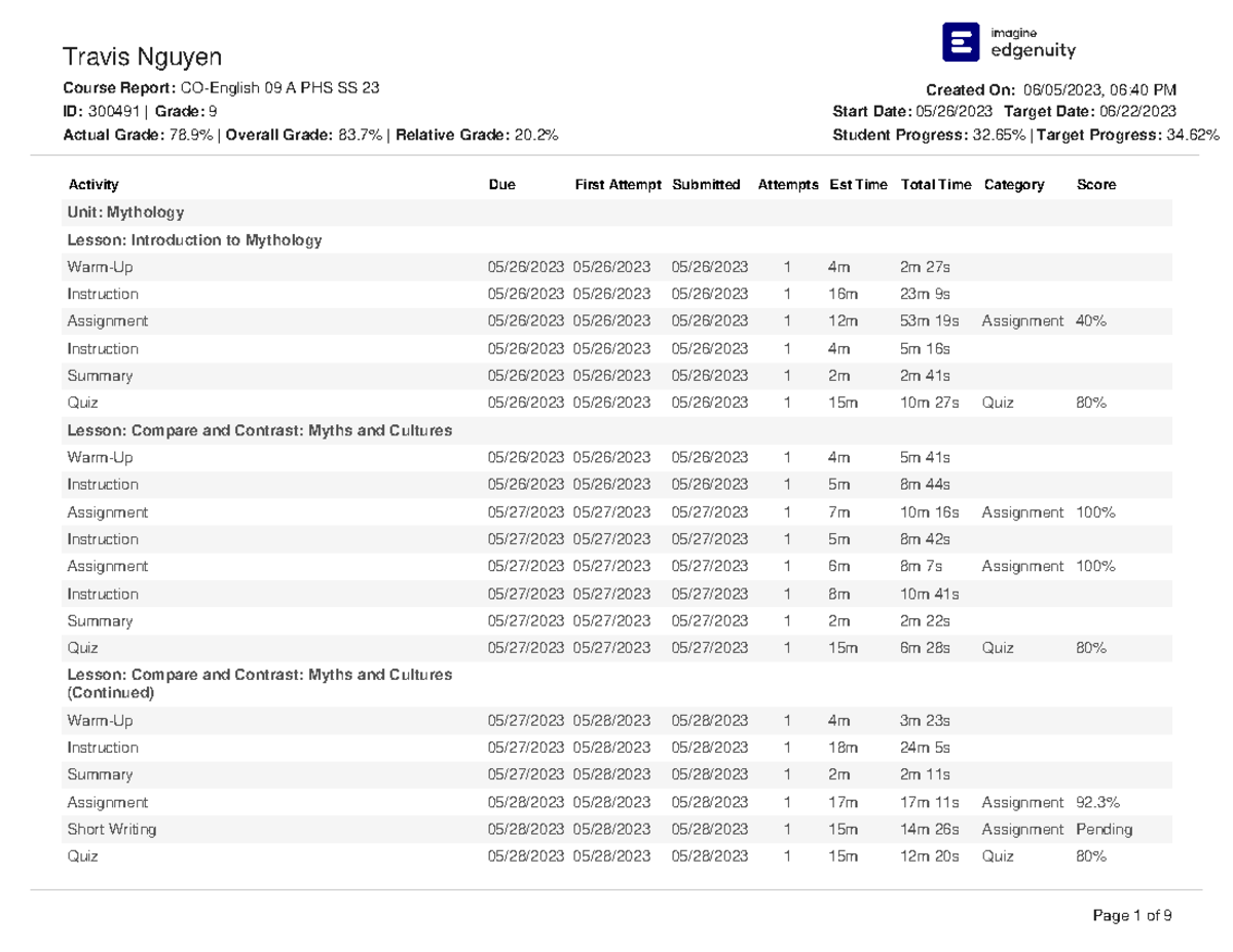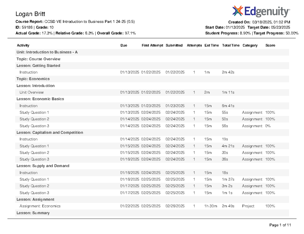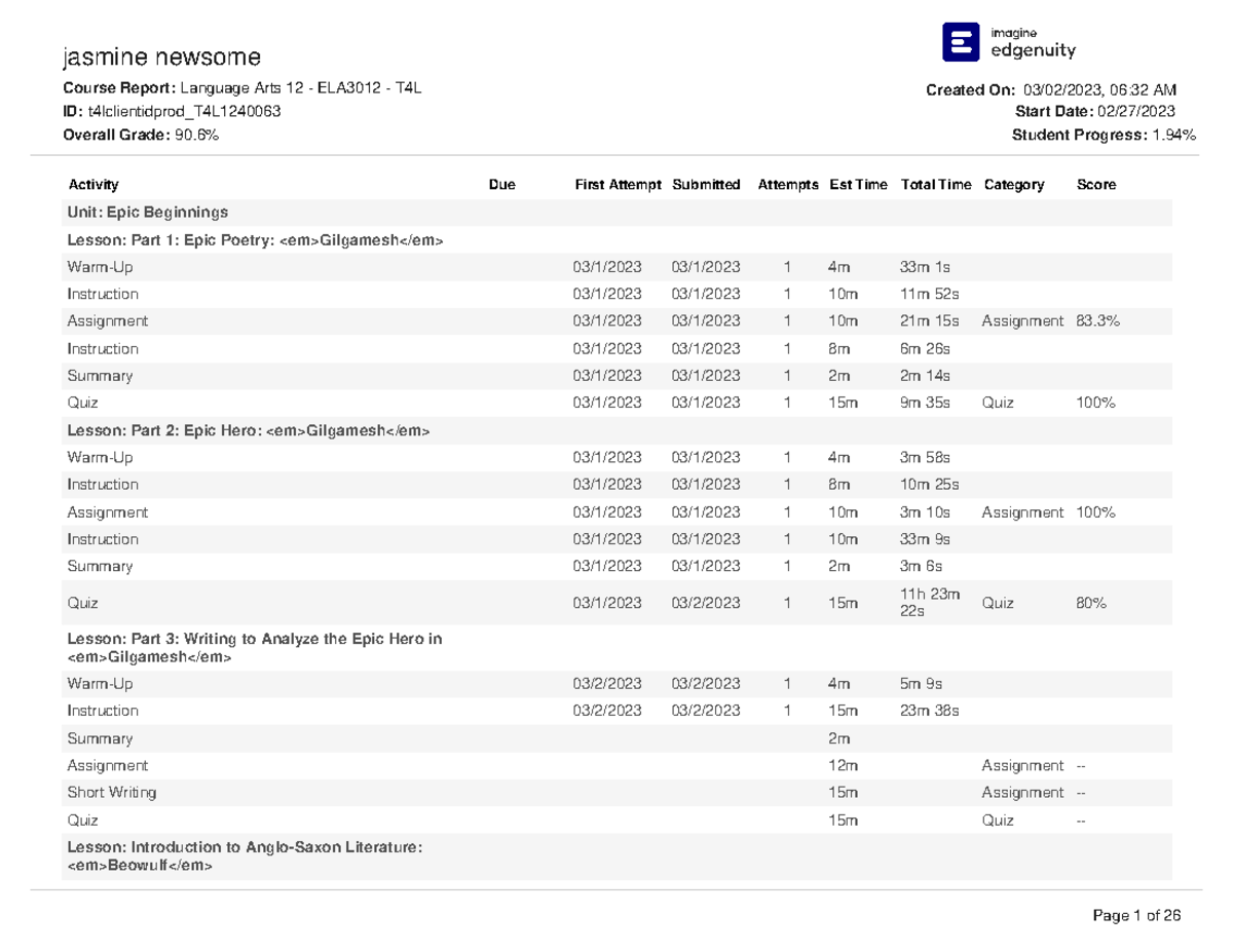 EdgeEX — Understanding the student Course Report – Edgenuity