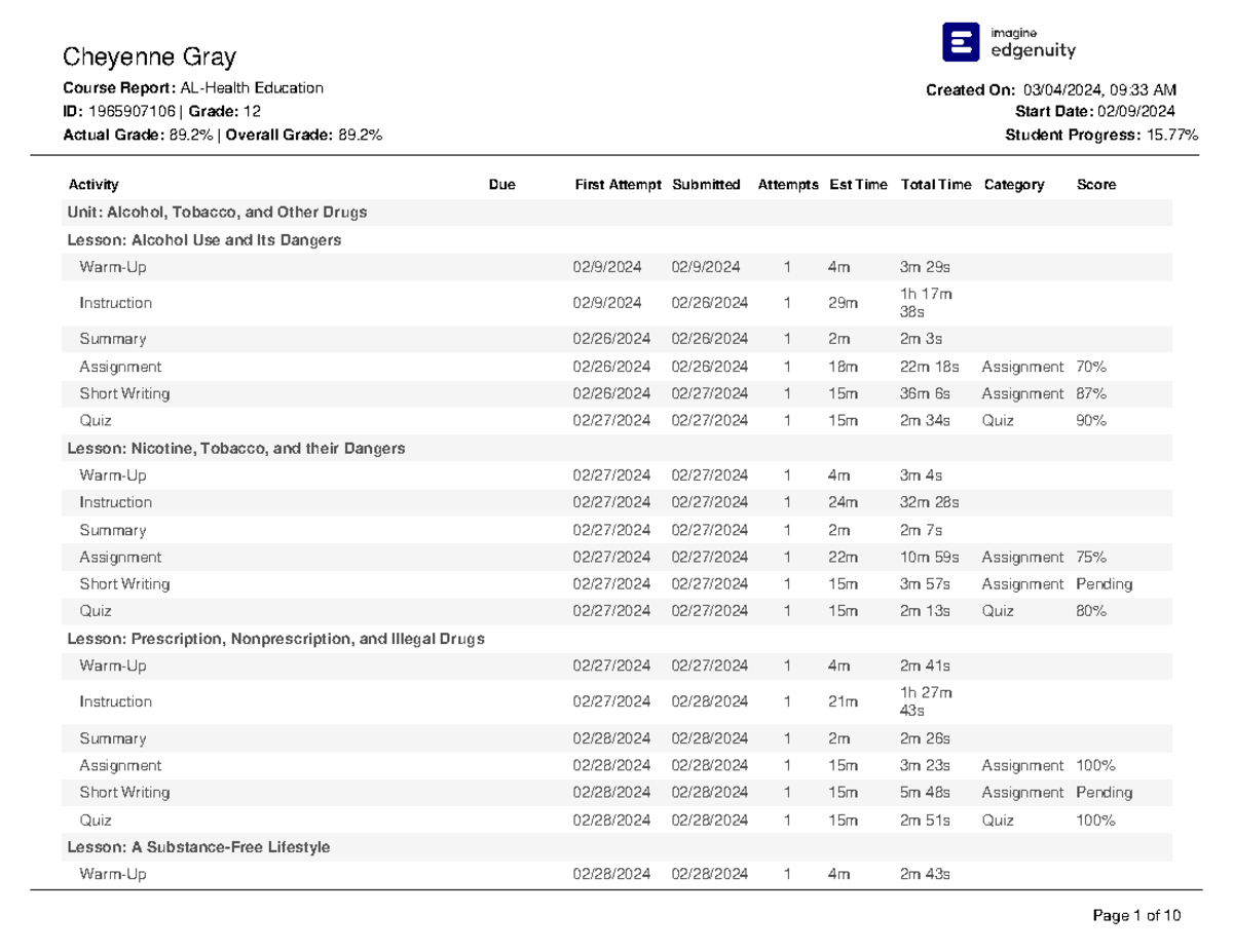 Course Report 03 04 2024 Gray Cheyenne AL-Health Education - Activity ...