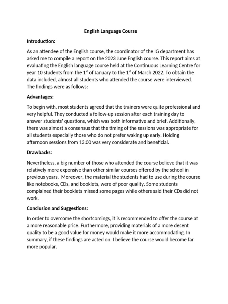 English Course Report | PDF