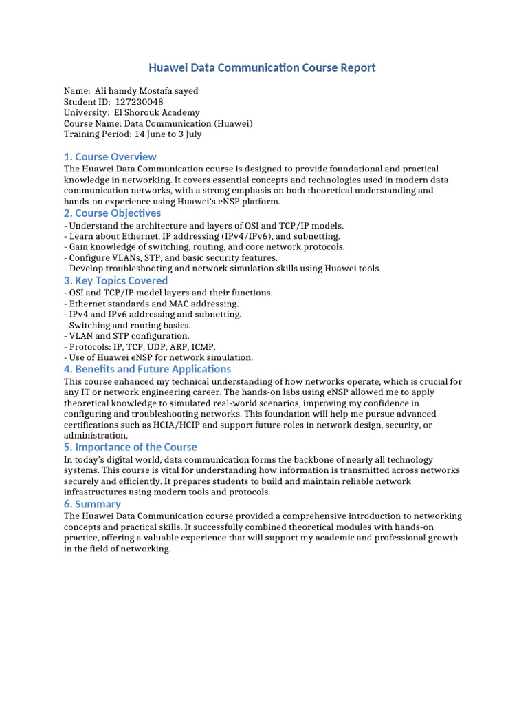 Huawei Data Communication Course Report | PDF