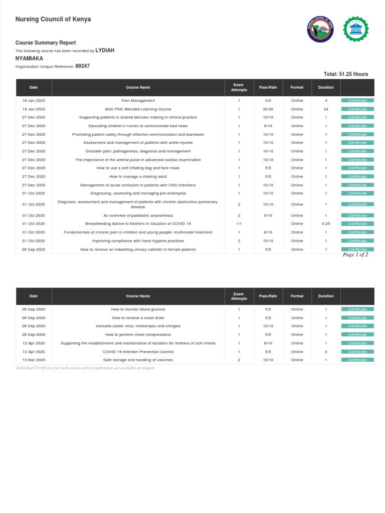 Kenya Nursing Council Course Report | PDF | Clinical Medicine | Medical ...