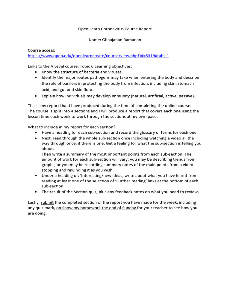 Student A Open Learn Coronavirus Course Report | PDF | Vaccines | Infection