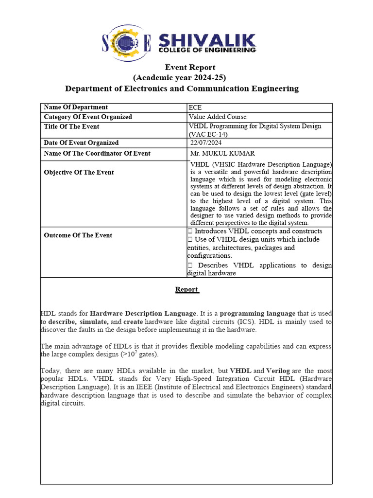 VHDL Programming Course Report 2024 | PDF | Hardware Description ...