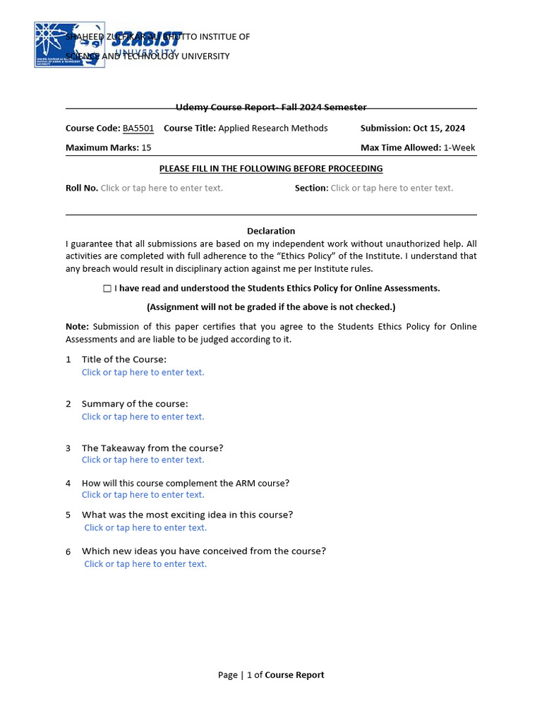 Course Report Template Guide | PDF