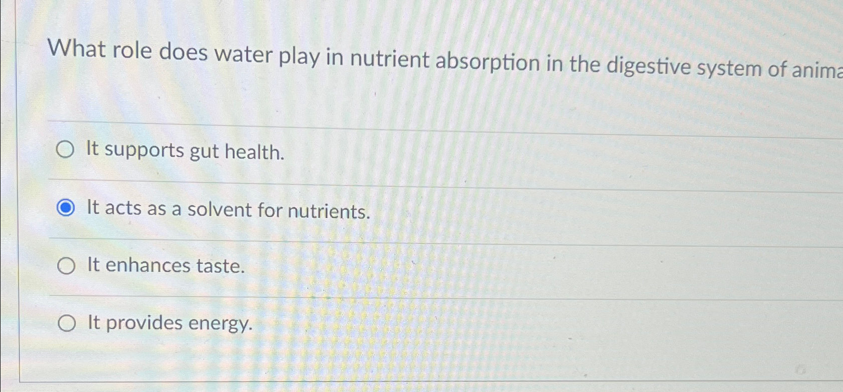 Solved What role does water play in nutrient absorption in | Chegg.com