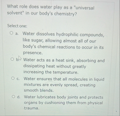 Solved What role does water play as a "universal solvent" in | Chegg.com