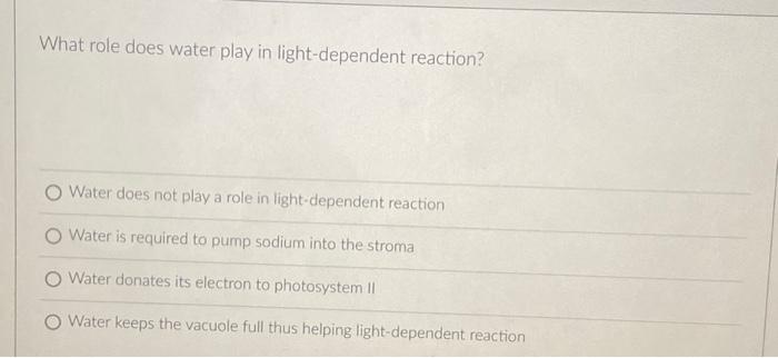 Solved What role does water play in light-dependent | Chegg.com