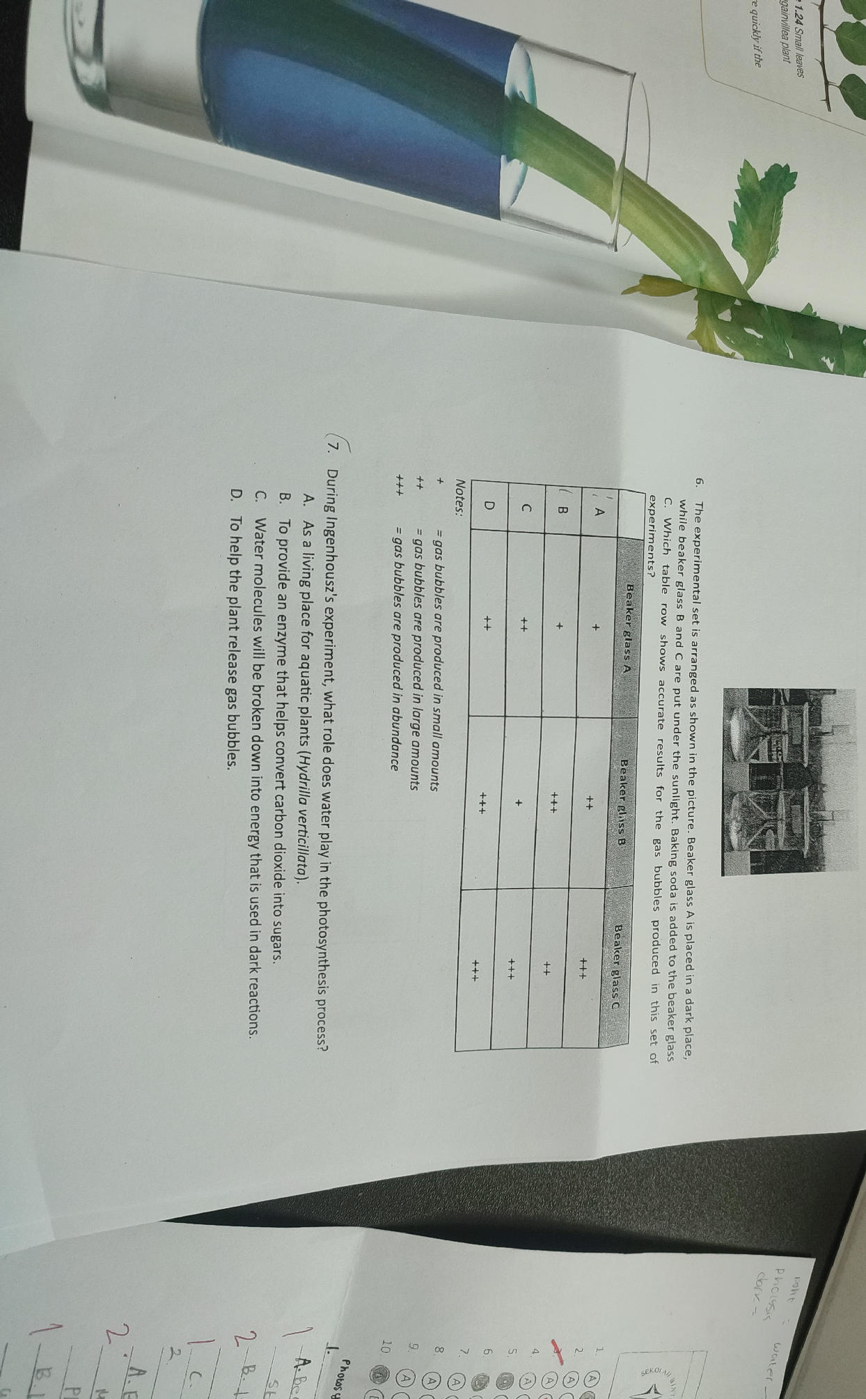 7. During Ingenhousz's experiment, what role | StudyX