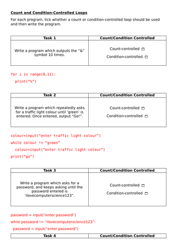 While and For Loops Python Tasks GCSE | Teaching Resources