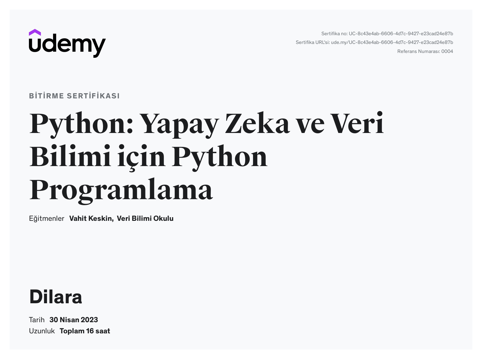 Python ile Veri Bilimi ve Makine Öğrenmesi Sertifika Programı