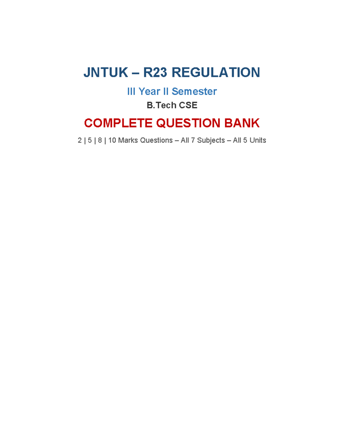 JNTUK R23 Regulation B.Tech CSE Complete Question Bank for All Subjects ...