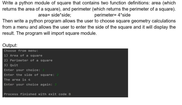 Solved Write a python module of square that contains two | Chegg.com