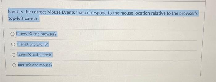 Solved Identify the correct Mouse Events that correspond to | Chegg.com