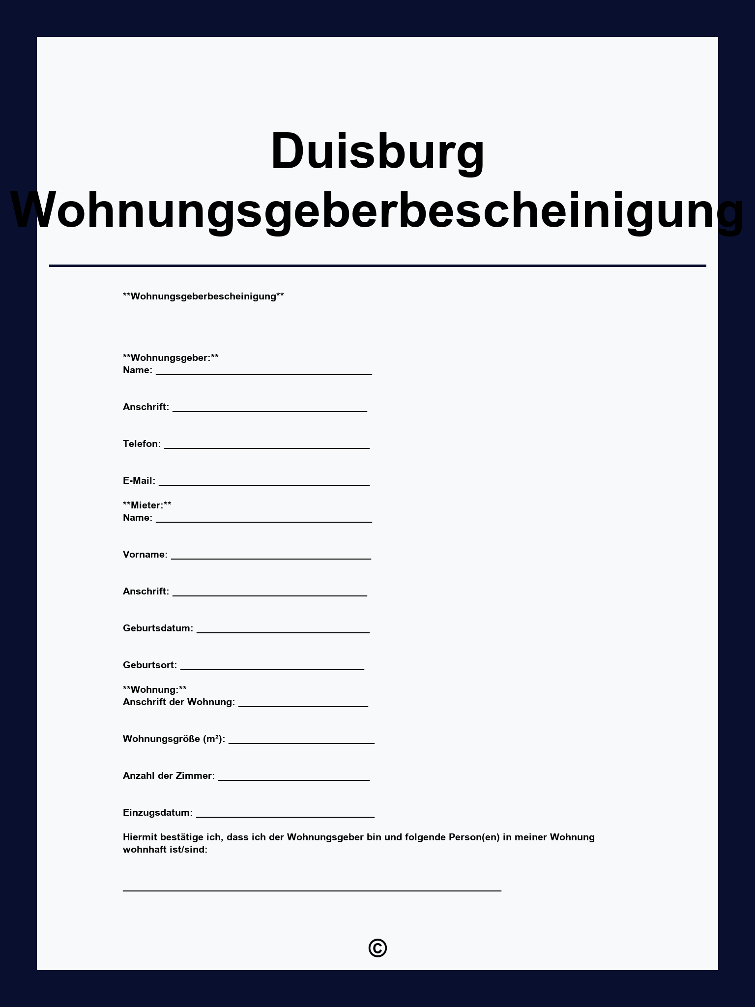 Duisburg Wohnungsgeberbescheinigung
