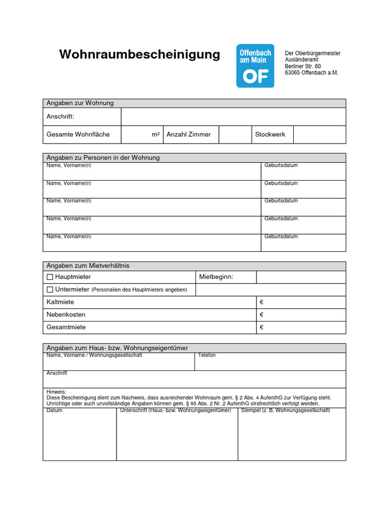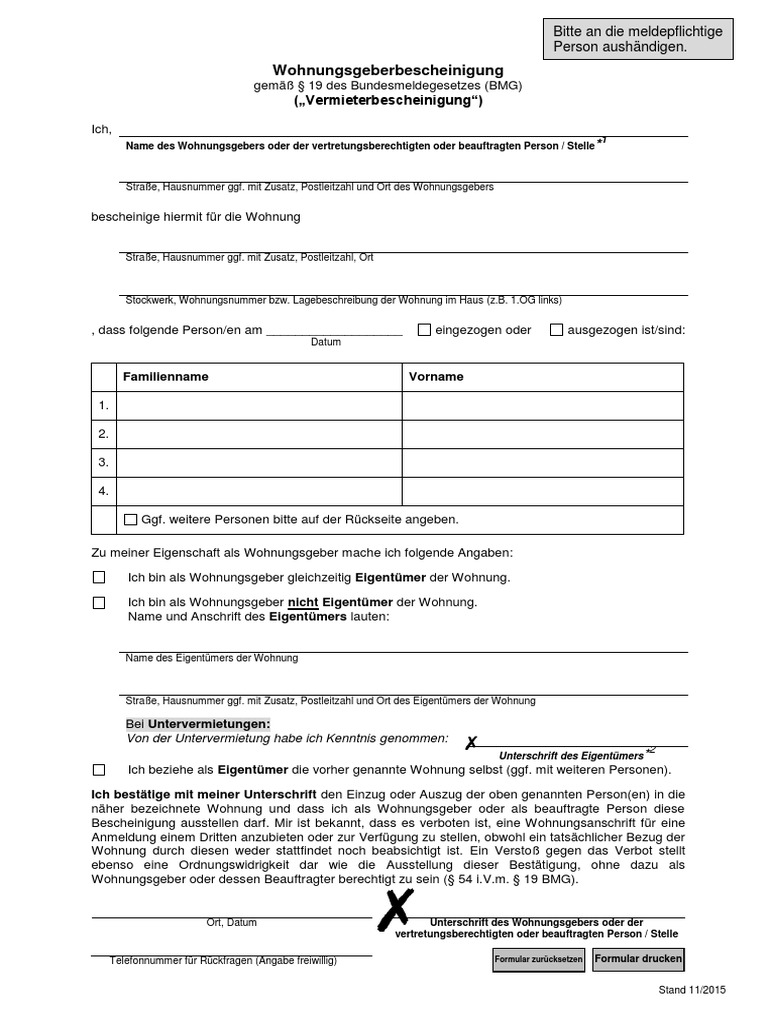 Wohnungsgeberbescheinigung Formular Zum Ausfüllen – YZFEXW