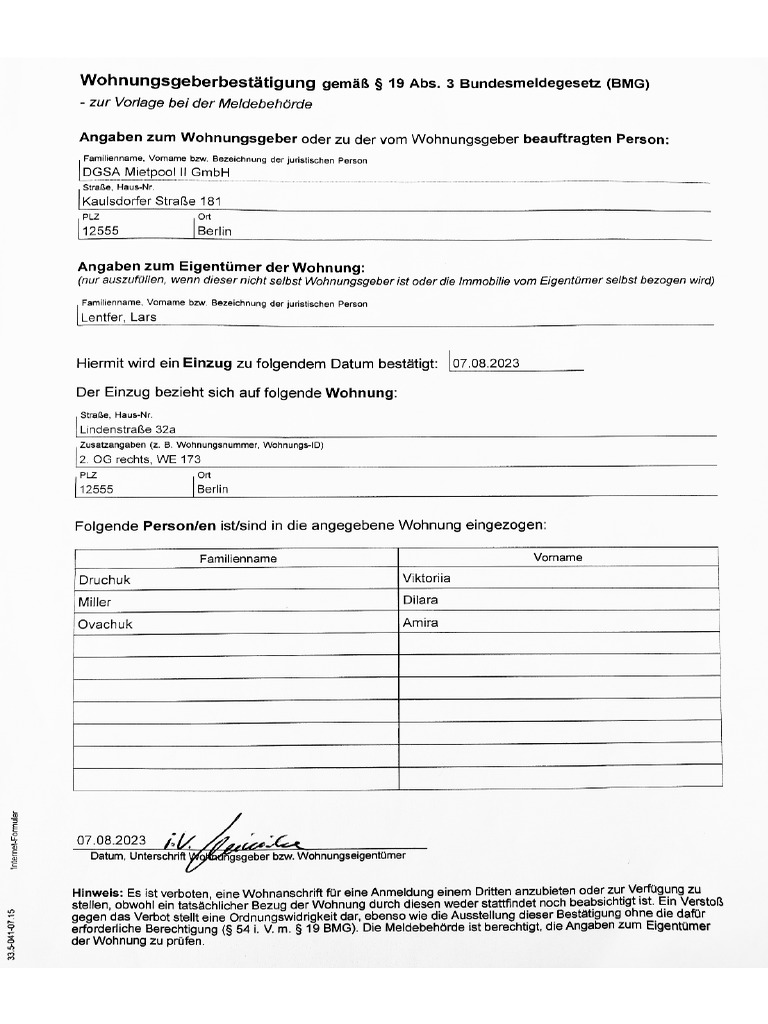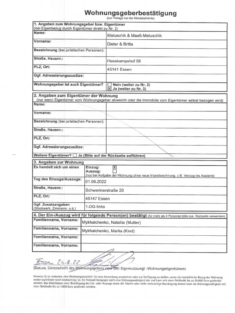 Wohnungsgeberbestätigung Mykhachenko | PDF