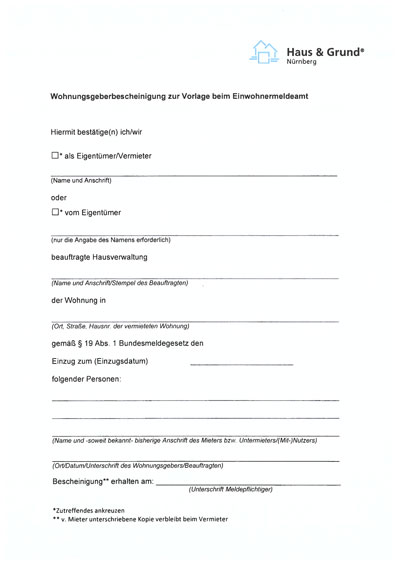 Wohnungsgeberbescheinigung (Versand) - Haus & Grund Nürnberg