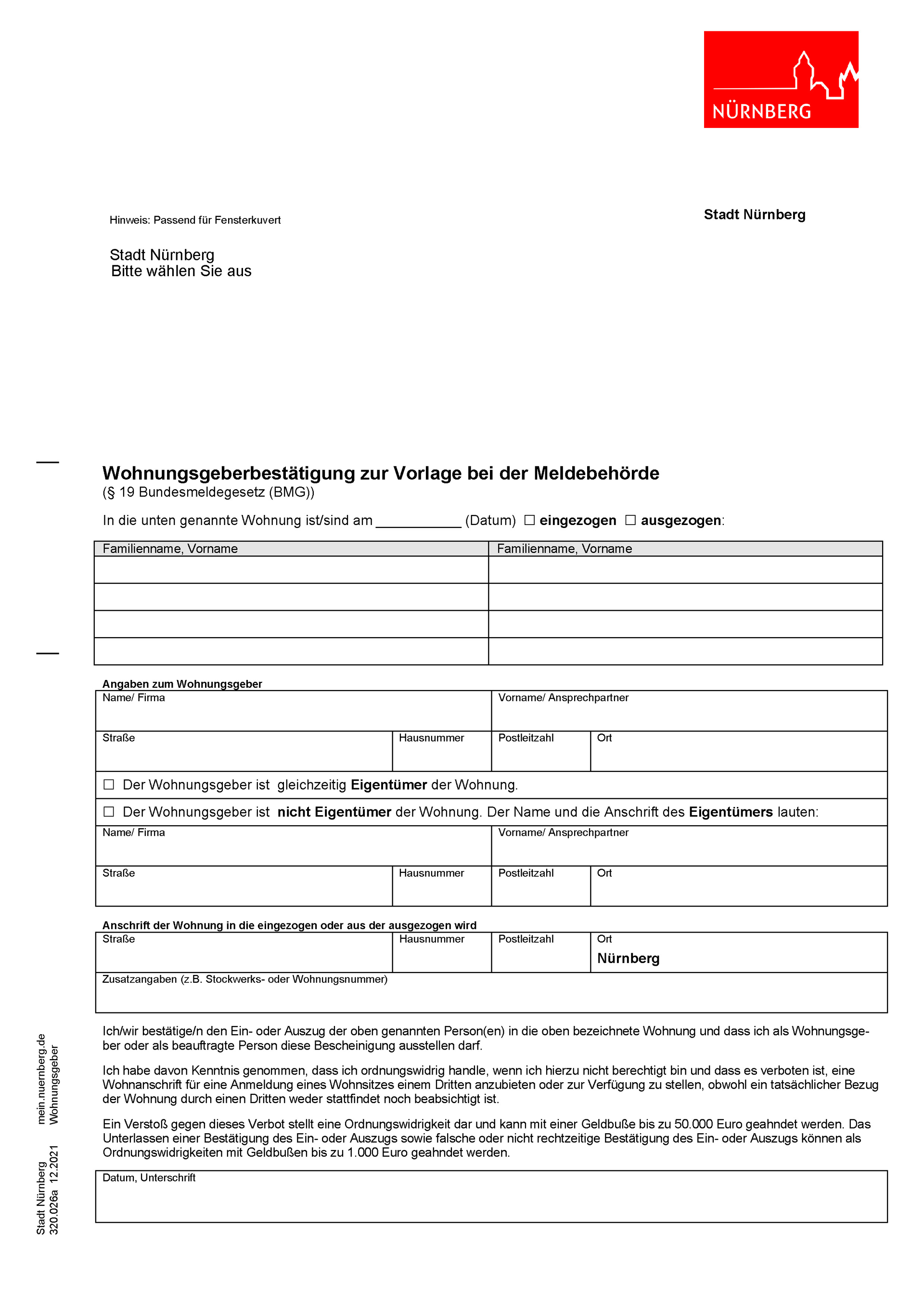 Formular Wohnungsgeberbestätigung | PDF