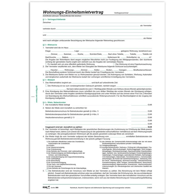RNK 599/10 MIETVERTRAG mit Wohnungsgeberbescheinigung DIN A4 - 10 Stück ...