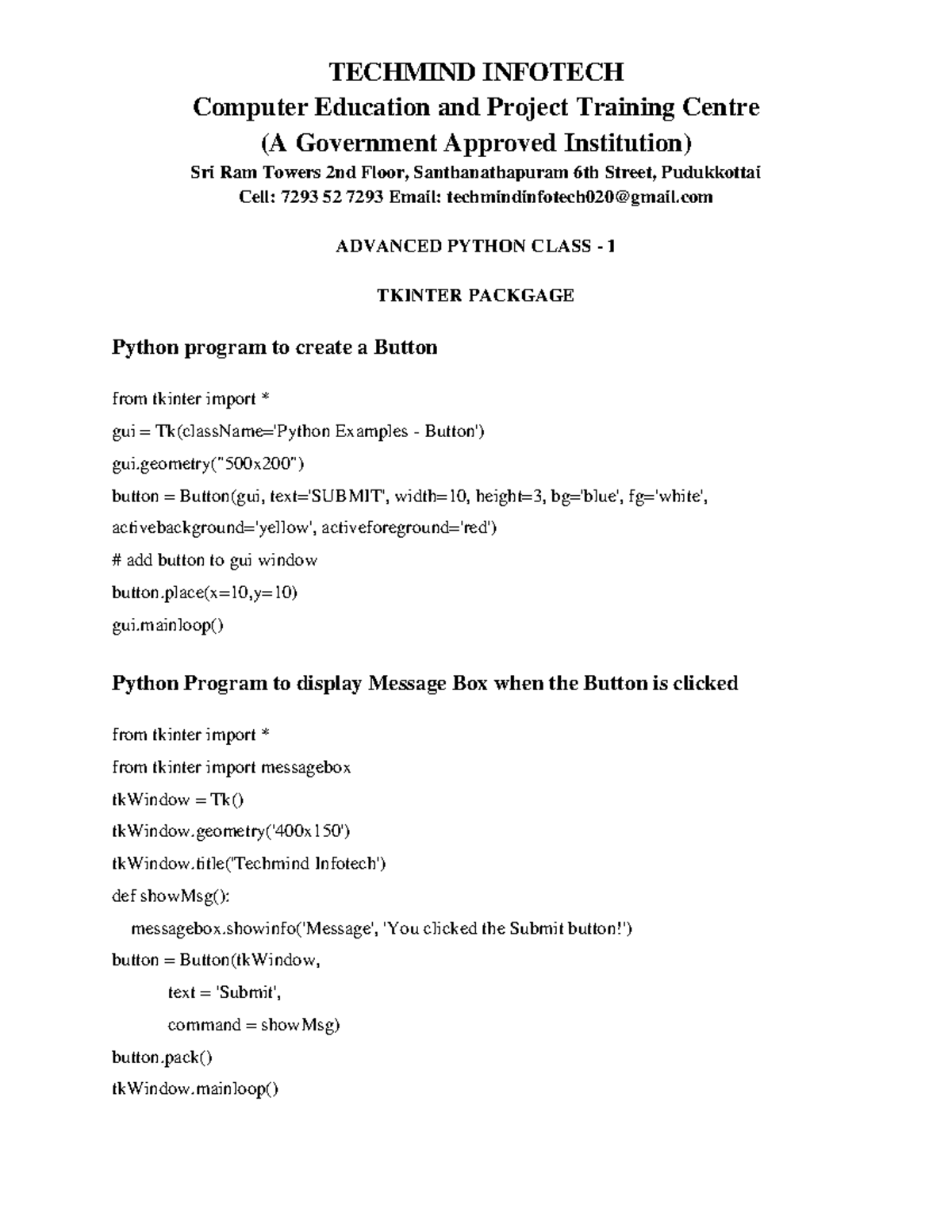 Advanced Python Class - 1 - TECHMIND INFOTECH Computer Education and ...