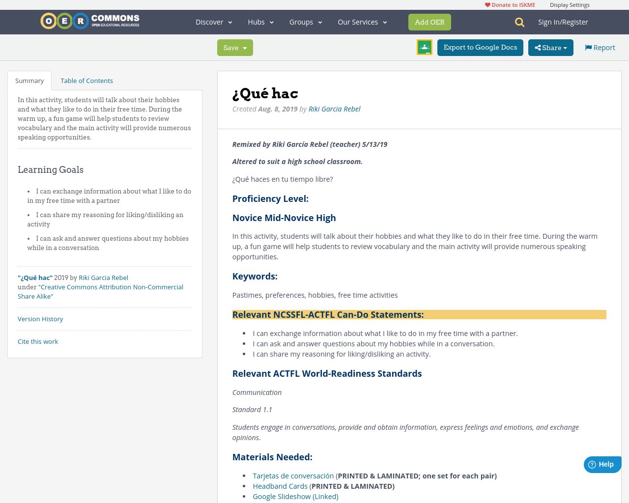 Lesson: | OER Commons