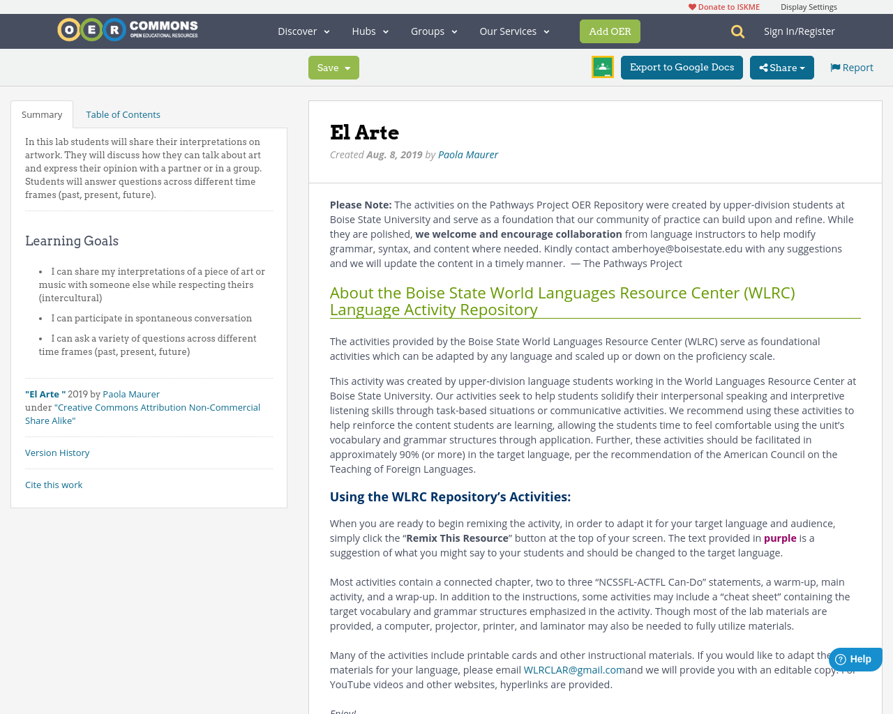 El Arte | OER Commons
