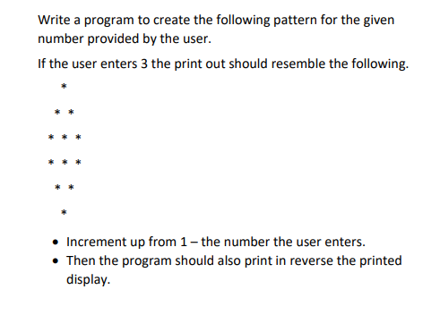 Solved Program to print the following | Chegg.com
