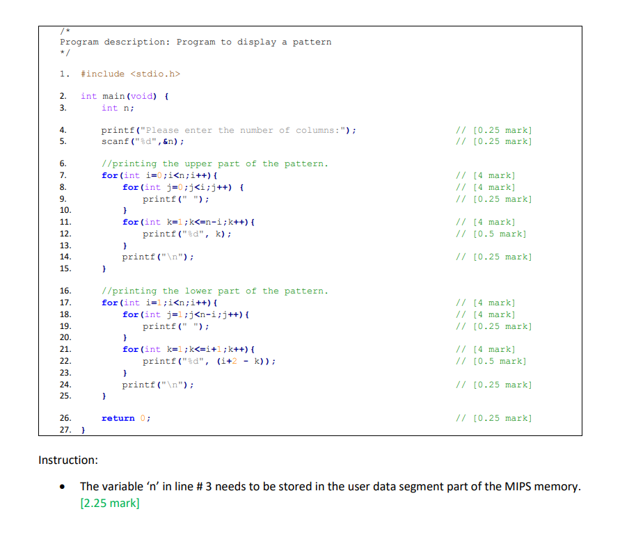 Solved Program description: Program to display a pattern */ | Chegg.com