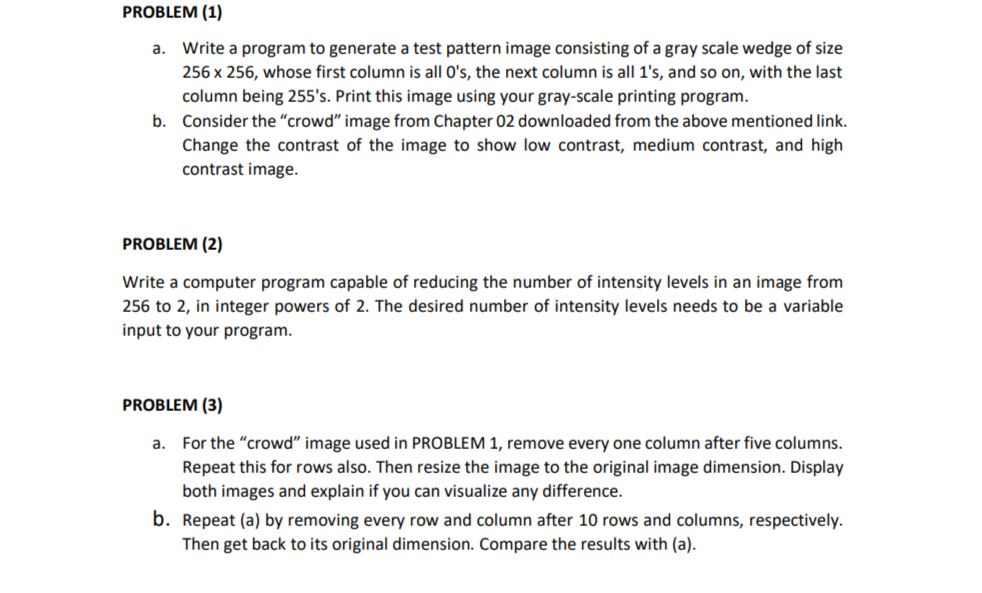 Solved a. Write a program to generate a test pattern image | Chegg.com