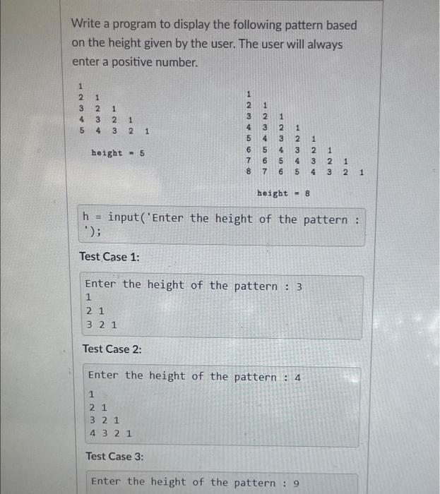 Solved Write a program that prints the pattern shown below: | Chegg.com