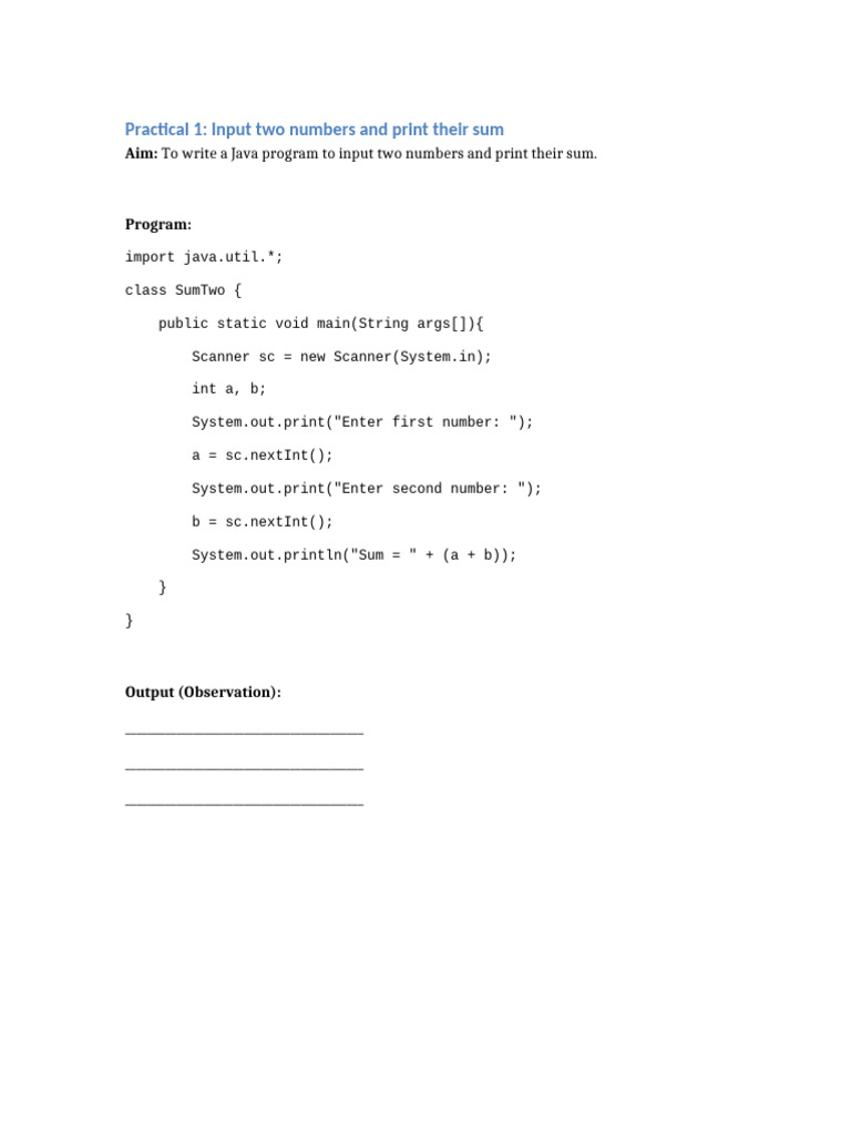 JAVA Practical Programs - Experiment No. 1 AIM - Write a Java program ...