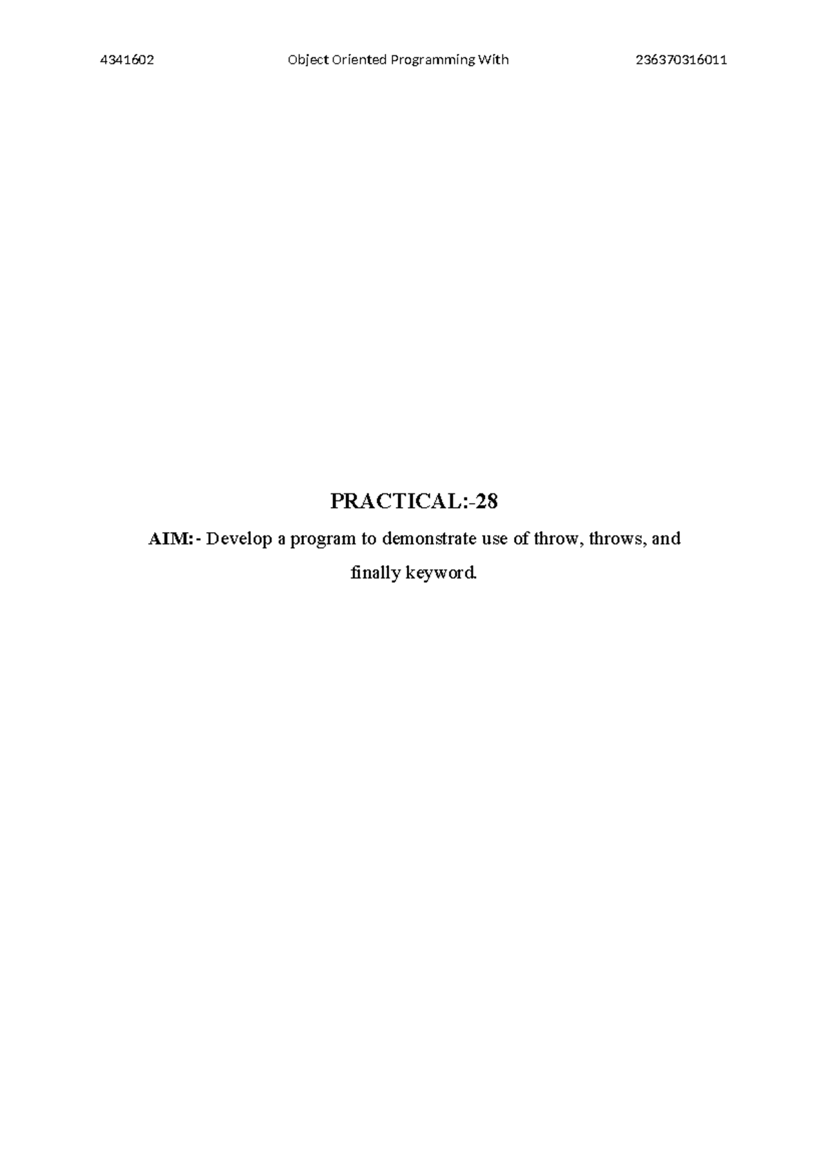 JAVA Exception Implementation - Experiment AIM - Write a Java program ...