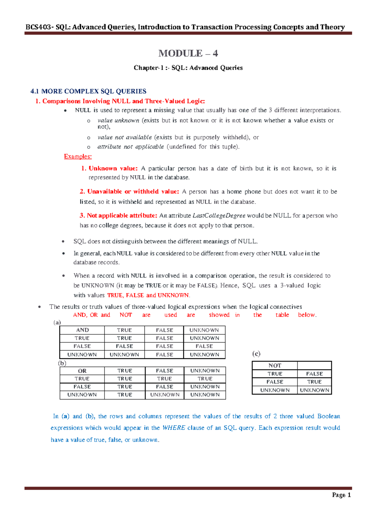 DBMS Module 4 Notes: Advanced SQL Queries & Transaction Processing ...