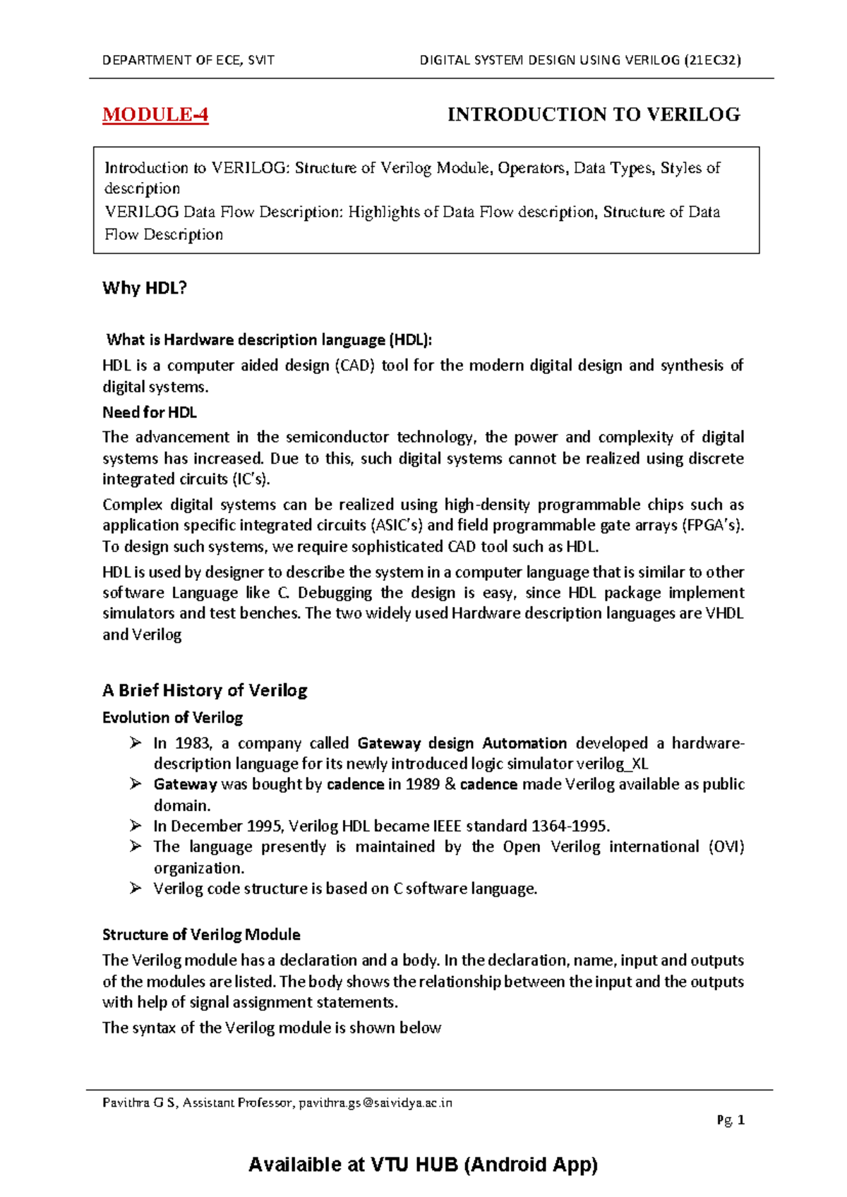 Digital System Design Using Verilog (21EC32) - Module 4 Notes - Studocu