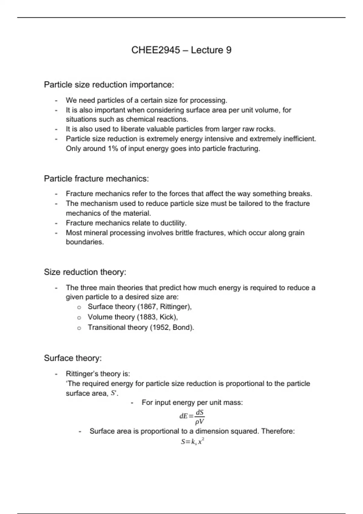 Summary of Lecture 9 CHEE2945 Particle Engineering - CHEE2945 - Stuvia US