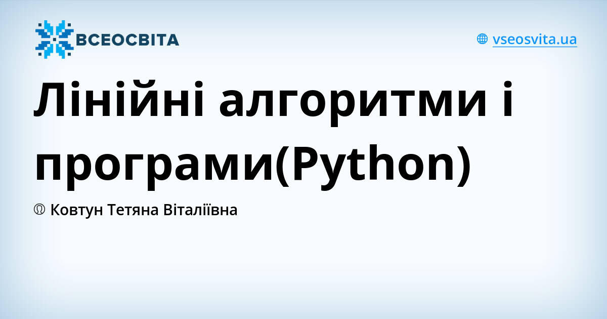 Лінійні алгоритми і програми(Python) | Урок на 3 завдання. Інформатика
