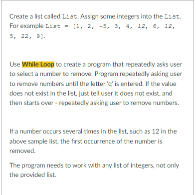 Solved Create a list called List. Assign some integers into | Chegg.com