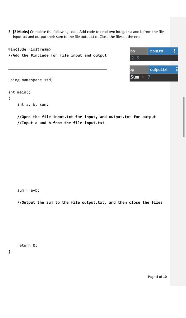 Solved 3. [2 Marks] Complete the following code. Add code to | Chegg.com