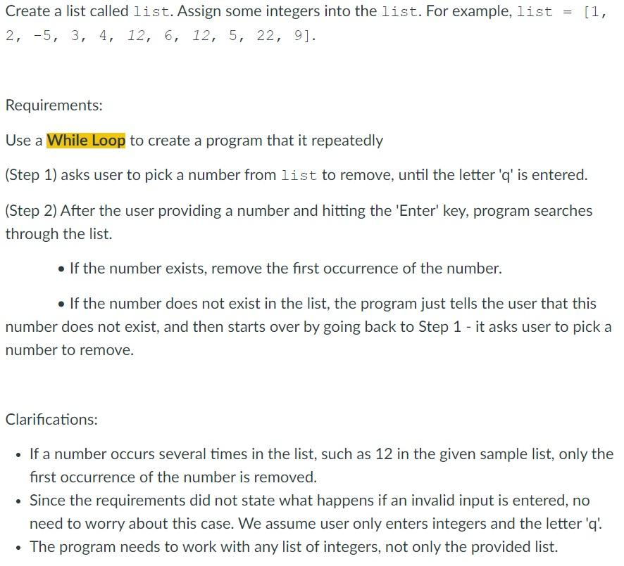 Solved - User may input an integer list using the code | Chegg.com