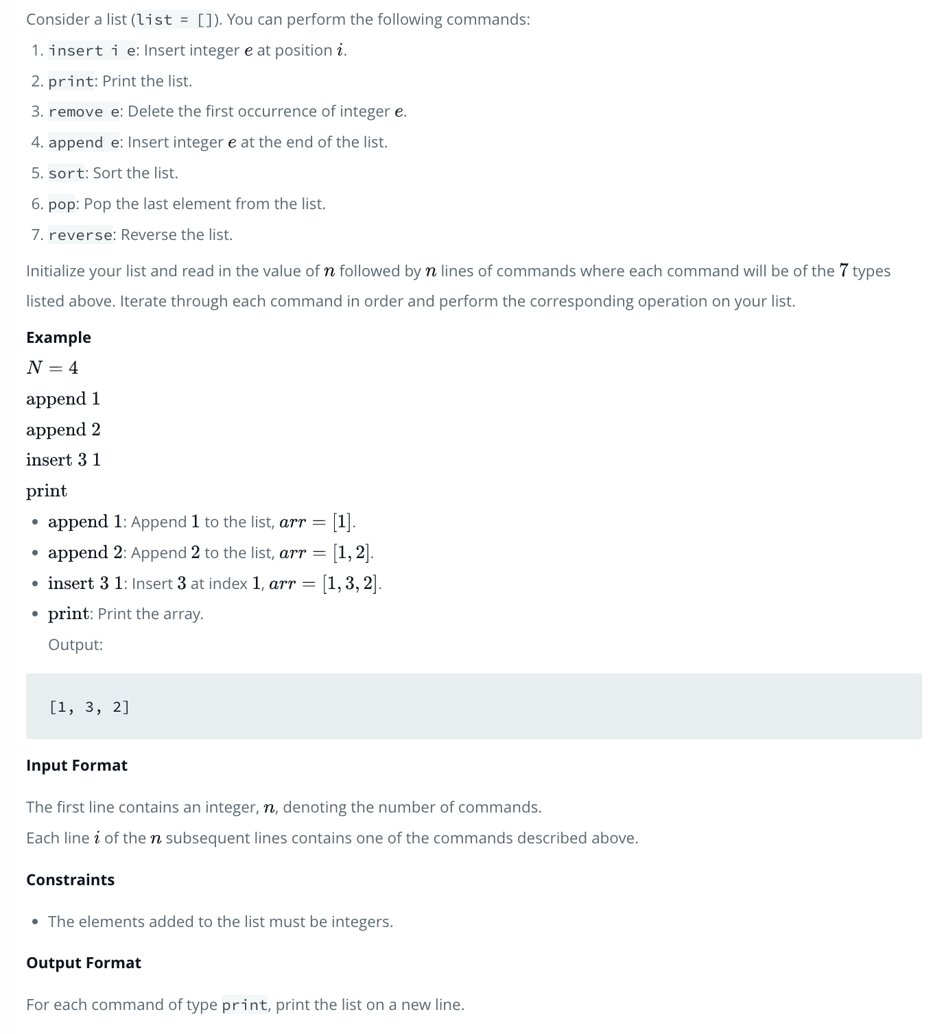 Solved Consider a list (list =[] ). You can perform the | Chegg.com