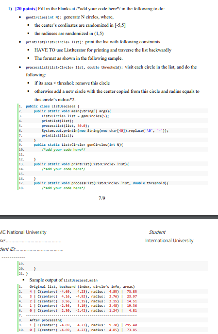 1) [20 points Fill in the blanks at /*add your code | Chegg.com