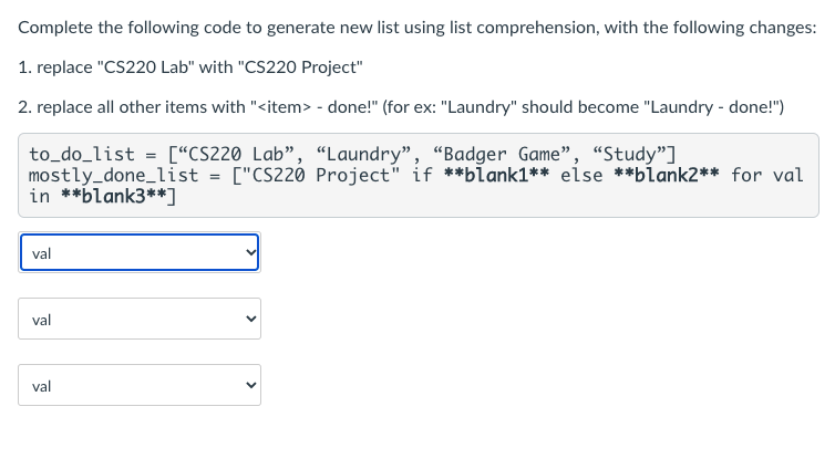 Solved Complete the following code to generate new list | Chegg.com