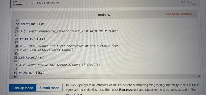 Solved 3.19 LAB: List basics Given the user inputs, complete | Chegg.com