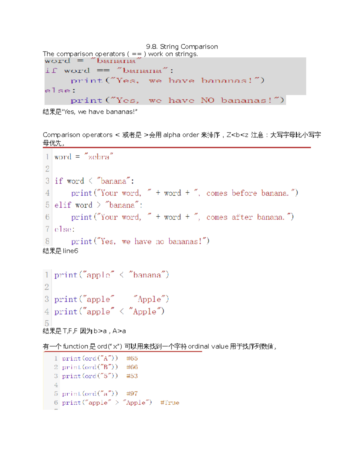 Week 5 Notes - String Comparison The comparison operators ( == ) work ...