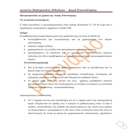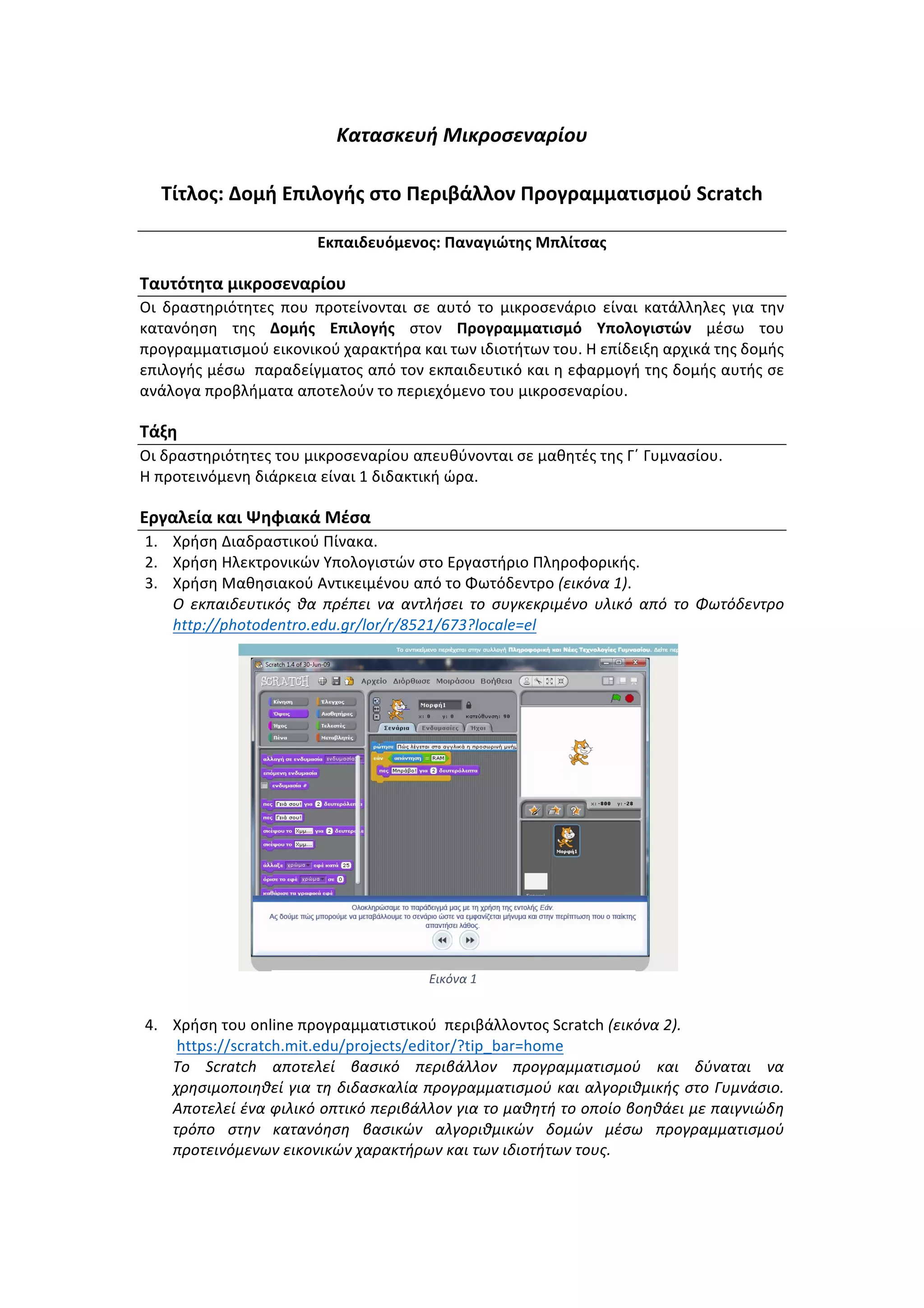 Μικροσενάριο δραστηριοτήτων με χρήση του Scratch | PDF