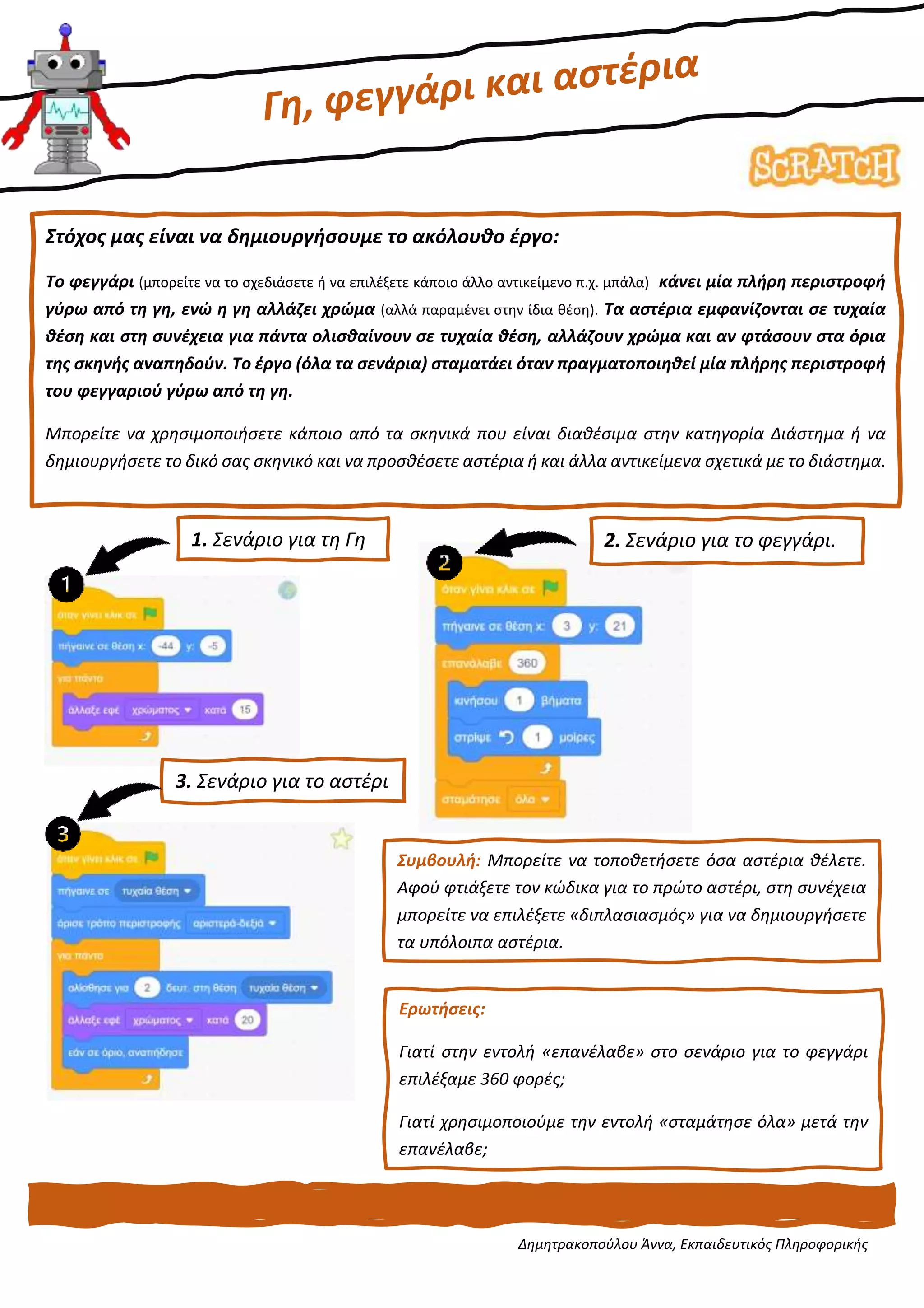 Scratch Φύλλο Εργασίας: Γη, φεγγάρι και αστέρια | DOCX