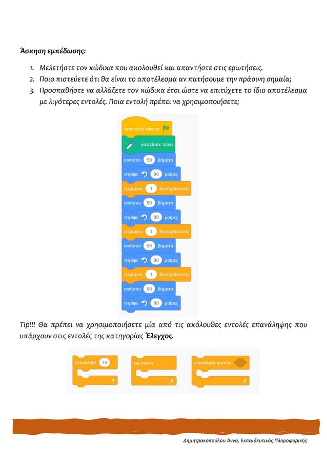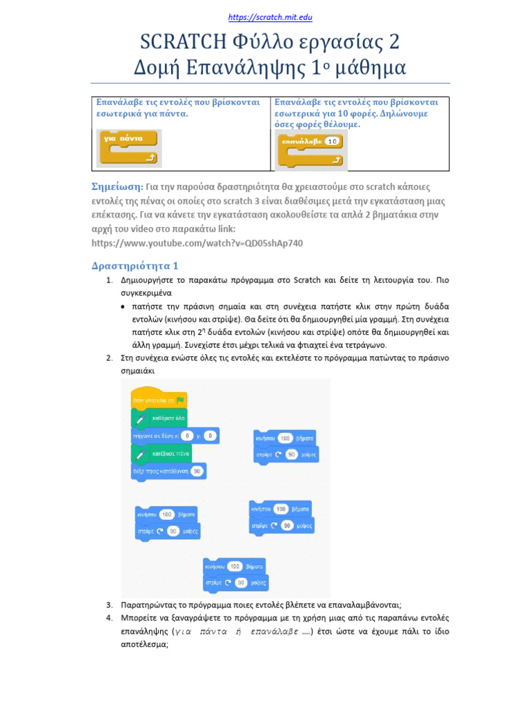 Scratch: Φύλλο εργασίας Επανέλαβε | PDF