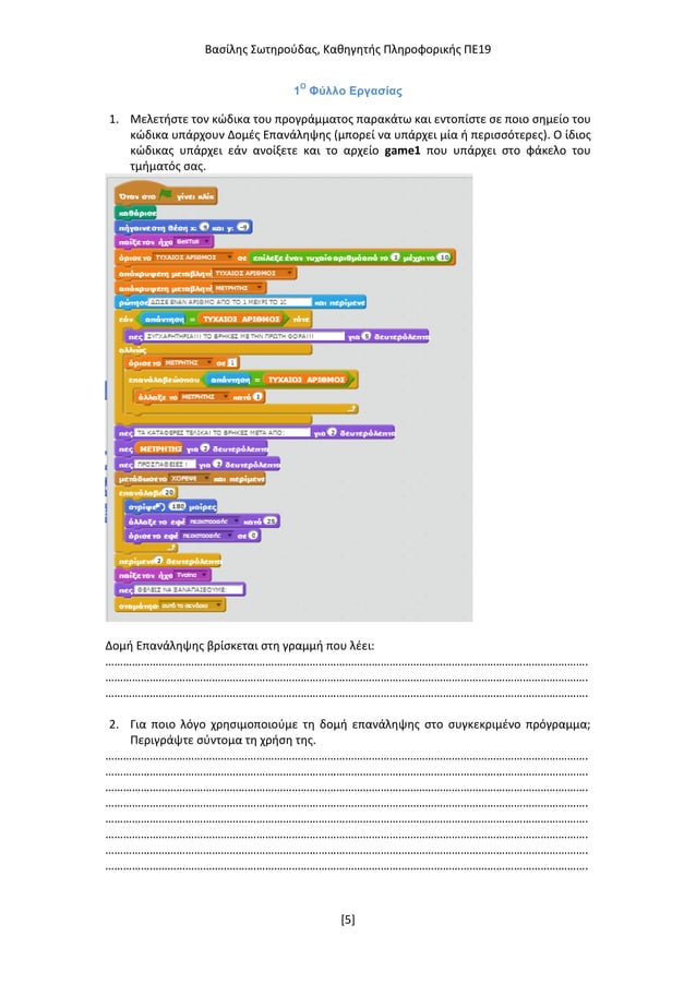 Scratch: Φύλλο Εργασίας 1 | PDF