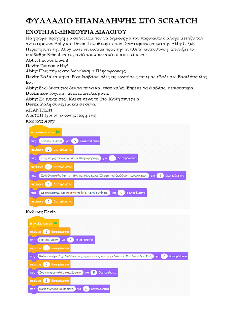 Φυλλάδιο Επανάληψης Scratch-Α Γυμνασίου | PDF